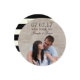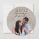 MODERN LINES | PHOTO SAVE THE DATE CARD | ROUND CARD. ELKE CLARKE© This and other colors and styles are available at www.zazzle.com/epclarke. Modern save the date announcement with your engagement photo on the front with black elegant script font text overlay. On the back a bold, black and cream stripes pattern background has the wedding announcement text you can customize. Other colors available.