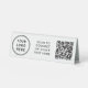 Modern table top tent sign featuring your logo and QR code for customers to scan to make a payment or for a list of your products, services, prices or other information.