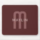 Modern Looking Monogrammed Name | Maroon Red Mouse Pad