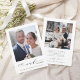 Simple and modern wedding photo thank you card with an additional photo and custom text on the back. This card can be used for a wedding, bridal shower, engagement, anniversary, or any special event. For more advanced customization of this design, please click the Customize Further link to change the font, size, color, etc.