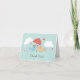Modern & Cute bride & groom love birds holding an umbrella and surrounded by hearts set on a sky blue background thank you note. Matching Bridal shower invitations, Postage stamps & stickers available in our shop at www.celebrateitinvites.com. Customize with your information and you're all set to go!