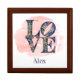 Make a bold and meaningful statement with these modern gift box featuring the word "LOVE" beautifully illustrated in floral lettering. Each letter is adorned with elegant botanical details, creating a romantic and artistic design. Personalize them with a custom name or text to create a one-of-a-kind accessory or thoughtful gift. Perfect for anniversaries, Valentine’s Day, or birthday.