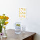 Modern LOVE typography with red hearts white gold print.