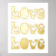 Modern LOVE typography with red hearts white gold Foil Prints