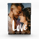 Sweet and simple keepsake for any couple or newlyweds, showcasing your favorite wedding or engagement photo with modern script calligraphy reading LOVE over your custom names and dark gradient to make the typography stand out.