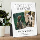 Double photo pet memorial plaque featuring a simple white background, a photo of 2 pets, the title 'forever in our hearts', their names, and a sympathy quote that reads 'I loved you your whole life, I'll miss you for the rest of mine'. Modern Loving Memory Pet Memorial Plaque