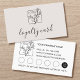 Create a stylish and professional loyalty card for your business. This editable design features modern script typography and can be personalized with your company logo, name, phone number, website, social media username, and a special promotion. It includes five designated stamp slots for you to mark. Loyalty cards are excellent for encouraging repeat business, offering customers valuable rewards such as discounts, free services, complimentary items, and exclusive deals. This simple template offers fully customizable text to fit your unique business needs. A versatile design that's ideal for various businesses, including makeup artists, hair and beauty salons, massage therapists, stylists, boutiques, stores, small businesses and many others. Printed colors: pale beige, off-white, black and white, or customize the color to align with your brand.