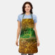 This stunning apron design features a sophisticated blend of textures and colors, perfect for the stylish chef or baker. The artwork showcases a realistic faux crushed gold foil texture at the top and bottom, framing a mesmerizing center of deep emerald green fluid art. The green section mimics the look of polished agate or marble, accented by subtle ribbons of gold glitter dust that separate the metallic and stone textures.