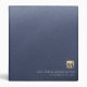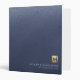 Elegant blue leather look texture and faux gold monogrammed modern binder designed for law firms and legal professionals.