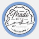Circle Made with Love Sticker features a modern typography of 'Made with Love' in a label design. Product includes a template to customize with your name or company. Click on Personlize and customize further to change background color.