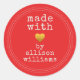 Simple and modern homemade sticker with the text made with love and your name in stylish typography with a gold heart on a bright red background. Simply add your name and text to the label. Exclusively designed for you by Happy Dolphin Studio. If you need any help or matching products, please contact us at happydolphinstudio@outlook.com.
