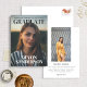 The front of the announcement features a striking full-page photo of the graduate, serving as the centerpiece of the design. Large serif type boldly showcases the graduate's name and school, adding a touch of glamour and prestige to the announcement.