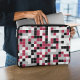 This colorful laptop sleeve features a multicolored geometric pattern in Viva Magenta, black, gray and white. The squares are colored in random order and you can edit the colors in the Design tool.