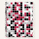 This college-ruled spiral notebook features a colorful geometric design in trendy Viva Magenta, black, gray, and white on the front, and solid black on the back. The squares are colored in a random pattern and you can edit the colors in the Design tool.