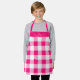 Great color and even though I ordered the kid size, it covers well enough to use during the holidays. I am not a big woman and prefer a shorter apron. I stand 5"6" and the length of the garment goes to mid-thigh. The tie straps fit well at my waist and even though there is no neck strap adjustment, the opening is plenty big enough. I am happy with the size and fit. I am sharing my apron with my 10 year old grandson, too! The color is vibrant and looks good, as shown on the website. The stitching looks strong and reinforced. Photographed is front side and back side of the apron, reinforced straps and coloring. My phone camera may not be the best at showing the details.