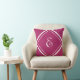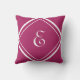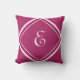 Modern magenta pillow features a large white girly script monogram in the center with a thin white diamond border and a wider outer white diamond border that extends off the edges. Personalize it with your initial in the sidebar. You can change the dark pink background color and/or font by tapping "Click to customize further." Makes a great gift for her.