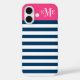 Modern Magenta Pink Navy Stripes Custom Monogram Case-Mate iPhone Case