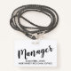 A simple stylish modern managers ID badge featuring a script typography title and your name and company name or region. Simple, modern, stylish. For management staff for meetings, events, and conventions.