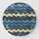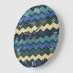 A clock with modern manly blue chevron pattern in shades of ivory and blue in a stone washed grunge style and easy to read white roman numerals. Perfect men fashion for the trendy and stylish man.
