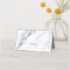 An abstract background reminiscent of glitter-veined marble in shades of dusty blue through steel blue and white is the backdrop for elegant script text and modern design layouts in the pieces of this beautiful wedding suite. The wedding table place card shown here features a spot for guest's name and table number with your names and wedding date on the back. Search ID816 to see other pieces and color choices for this set.