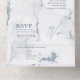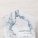 An abstract background reminiscent of glitter-veined marble in shades of dusty blue through steel blue and white is the backdrop for elegant script text and modern design layouts in the pieces of this beautiful wedding suite. The combination wedding invitation and postcard-style RSVP shown here features an elegant marble background and matching watercolor texture on the reverse. Search ID816 to see other pieces and color choices for this set.