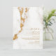 An abstract background reminiscent of glitter-veined marble in shades of gold through soft beige and white is the backdrop for elegant script text and modern design layouts in the pieces of this beautiful wedding suite. The wedding menu shown here features right-aligned text bordered by marble. Easily add your own names, wedding date and menu selections using the provided template. Search ID816 to see other pieces and color choices for this set.