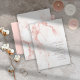 An abstract background reminiscent of glitter-veined marble in shades of rose gold is the backdrop for elegant script text and modern design layouts in the pieces of this beautiful wedding suite. The invitation shown here features a right-aligned text with an elegant marble border. Search ID816 to see other pieces and color choices for this set.