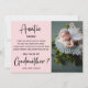 Ask your sister, cousin, or best friend to be your child's godmother with this photo card. Unique modern card feature 2 photos, calligraphy script, your message on a bright pink background.