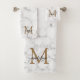Modern Marble Gold Girly Script Monogram Bath Towel Set