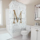 Modern Marble Gold Girly Script Monogram Shower Curtain