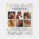Personalized horse photo fleece blanket featuring a modern marble background, 6 precious pictures of your beloved pet animal, a marble background, gold horseshoes & glitter, the text "in loving memory of", your horses name, birth/death dates, and the sympathy quote "your presence we miss, your memory we treasure, loving you always, forgetting you never".