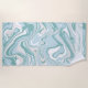 A modern Turquoise Blue Coastal Beach Waves Nautical Marble Effect Swirls Personalized Beach Towel with your name or any text of choice on it. Perfect for a beach vacation or the pool.