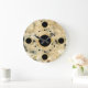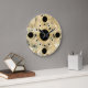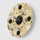 Modern printed marble look wall clocks with black and gold dots on the clock face in this decorative wall decor clock design for your kitchen, bathroom, or any room in your house you want to add some color and character.