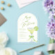 Margs & Matrimony is a trendy theme for a bridal shower where the main goal is to let loose and have fun! Design features modern script typography, a trendy arch, and a watercolor-style margarita with a green bow tied around the stem of the glass to give it that bridal touch. Personalize the template with the bride-to-be's name and party details on the front. © Kimbellished, LLC