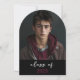 Celebrate your graduate in style with this modern and fun arch-shaped graduation announcement! Featuring a sleek black and white palette with bold pops of maroon burgundy, this minimal design adds just the right amount of personality to the big day. The back showcases your graduate’s favorite photo, making it a perfect keepsake to share with friends and family. Simple, stylish, and full of joy—just like your grad! Created by Simply Farmhouse Press.