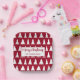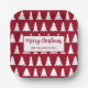 Host a festive holiday party with paper plates featuring a white geometric tree pattern on a maroon background. In a white rectangle across the center, it reads, "Merry Christmas" in a burgundy red script font above your name in a simple burgundy font. Personalize it by adding a custom greeting, family name and/or the year in the sidebar.