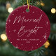 Modern Married and Bright Script Cranberry Photo Ceramic Ornament