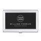Elegant, black business card holder with your custom logo, name and title/company name. White text.