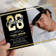 Masculine graduation party invitations featuring a stylish black background that can be changed to fit your personal taste or match your school colors, with a bold real foil gold "26" representing the class year and symbolizing the start of a new chapter in life. Plus sleek gold lines running across the top and bottom add a touch of modernity, giving them a sleek and sophisticated look that is sure to catch the eye of anyone who receives them.