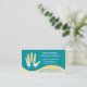 This modern and soothing business card is ideal for a masseuse or a massage therapist. It features a symbol on the left side with a hand and a human figure on a yoga pose inside. The curve and the soft color palette adds to the relaxing look of this design. This elegant business card will give your freelance or small business a professional look. This card is perfect for a massage office or for a mobile massage therapist. More information can be added on the back side.