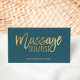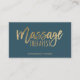 Modern massage therapist script chic gold blue business card