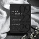 Easily personalize your wedding save the date cards with this editable template. Features minimal elegant typography design in matte black color.