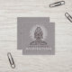 Modern meditation instructor business card with sitting lotus pose and mandala, with a faux linen effect gray background.