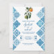 Modern Mediterranean Lemon Blue Tiles Wedding Invitation