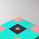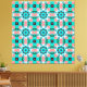This design features a mesmerizing, intricate geometric lattice pattern reminiscent of Moroccan tiles, modern kaleidoscopes, or Mediterranean mosaics. The vibrant color palette combines refreshing Aqua/Teal, Coral Pink/Salmon, deep Navy Blue/Black, and touches of rich Red, creating a bold, lively, and sophisticated look.