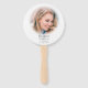 Create your own double sided memorial fan to give out at a memorial service, funeral, or celebration of life event. featuring 2 photos of your loved one, (from different times in their life) template text that reads "In loving memory, your presence we miss, your memory we treasure, loving you always, forgetting you never.", their name, dates and a personal message. The text style, size and color can be changed by clicking on the customize further link after personalizing.