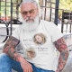 Create your own funeral memorial t-shirt featuring 2 photos of your loved one, (from different times in their life) template text that reads "In loving memory, your presence we miss, your memory we treasure, loving you always, forgetting you never.", their name, dates and a personal message. Perfect tribute for funerals, vigils and memorial services. The text style, size and color can be changed by clicking on the customize further link after personalizing.