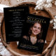 This elegant celebration of life program features a timeless black and gold design, creating a heartfelt and dignified tribute to your loved one. The front showcases a cherished portrait framed by refined typography, with the name and life dates beautifully displayed in a sophisticated serif font. The customizable phrase "In Loving Memory" adds a touching sentiment, followed by a personalized description honoring their legacy. The back presents a structured order of service with a sleek black background and gold lettering, ensuring a polished and easy-to-read layout. Perfect for funerals, memorial services, or life celebrations, this program serves as a meaningful keepsake for family and friends to cherish.