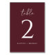 Modern Merlot Wedding Table Number