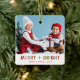 Whimsical and colorful, this customizable Merry and Bright holiday photo ornament features a festive and fun font pattern with colors of red, orange, pink, green, and blue. The back includes a cute matching pattern. Find matching items in the Colorful Merry and Bright Christmas Holiday Cards collection.